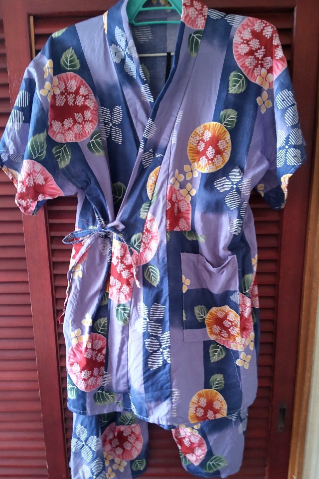 前までは甚平だったけれど、猛暑の時は甚平じゃ暑いとなったらしいのでもう少し涼しい仕様のパジャマになった。